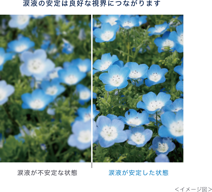 涙液が安定することで、まばたきの際の摩擦が減り、なめらかさを1日中キープします。