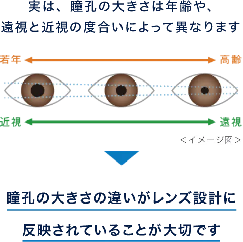 実は、瞳孔の大きさは年齢や、遠視と 近視の度合いによって異なります